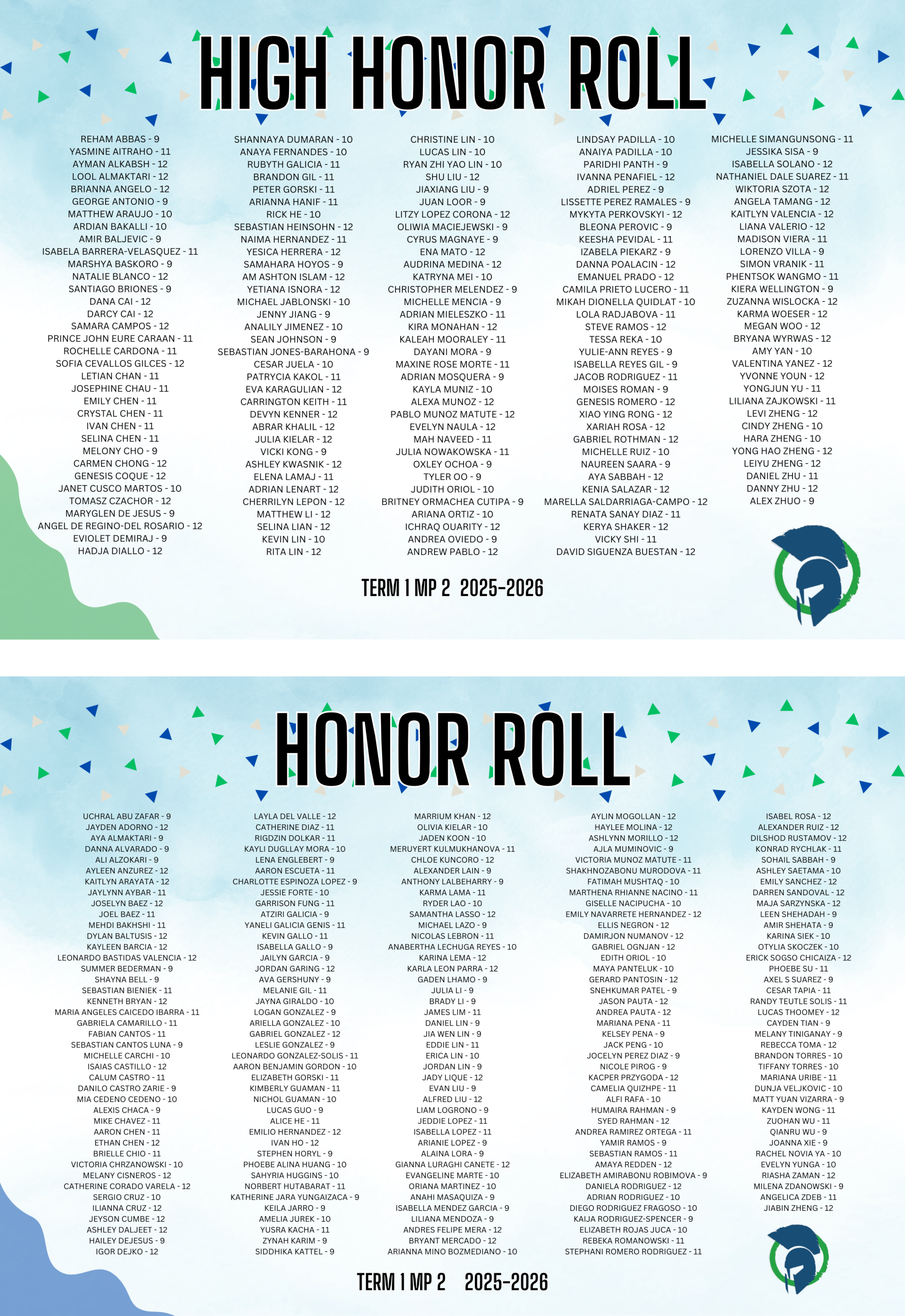 Congrats to our Honor Roll Argos who earned their spot this marking period! 💚💙✨