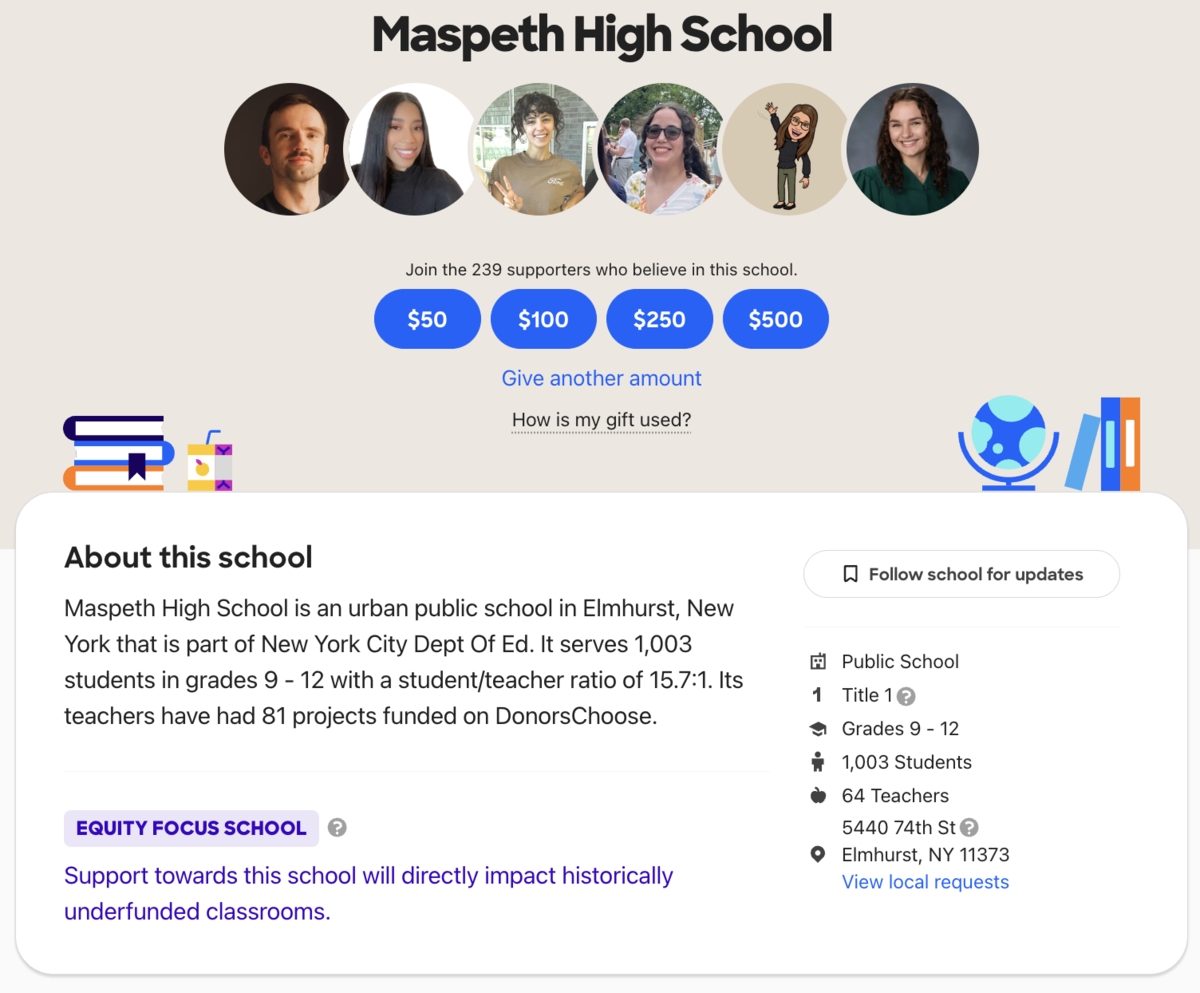 ➡️ DONATE NOW: Support a Maspeth High School Classroom on DonorsChoose