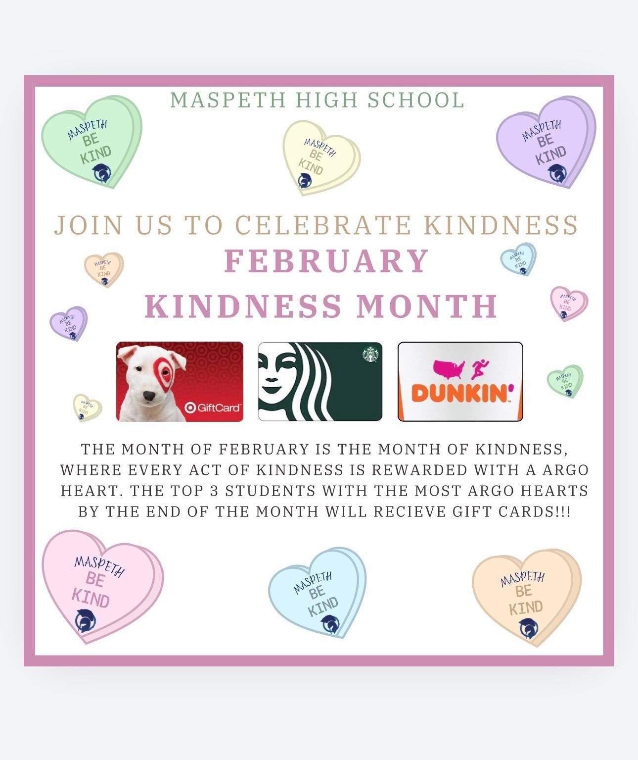 Each staff member will receive six laminated Argo Hearts ❤️💗 to award to students who demonstrate genuine acts of kindness—big or small, but always meaningful. Whether it’s helping a classmate, showing respect, lending a hand, or simply leading with compassion, we want these hearts to truly represent students who go above and beyond to make Maspeth a kinder place.